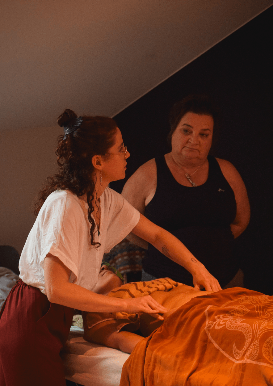 Elke sessie gebeurt met duidelijke uitleg, informed consent en respect voor grenzen — de vrouw blijft altijd de expert van haar eigen lichaam. Onze werkwijze is volledig extern, met aanraking die zacht, traag en pijnvrij blijft.